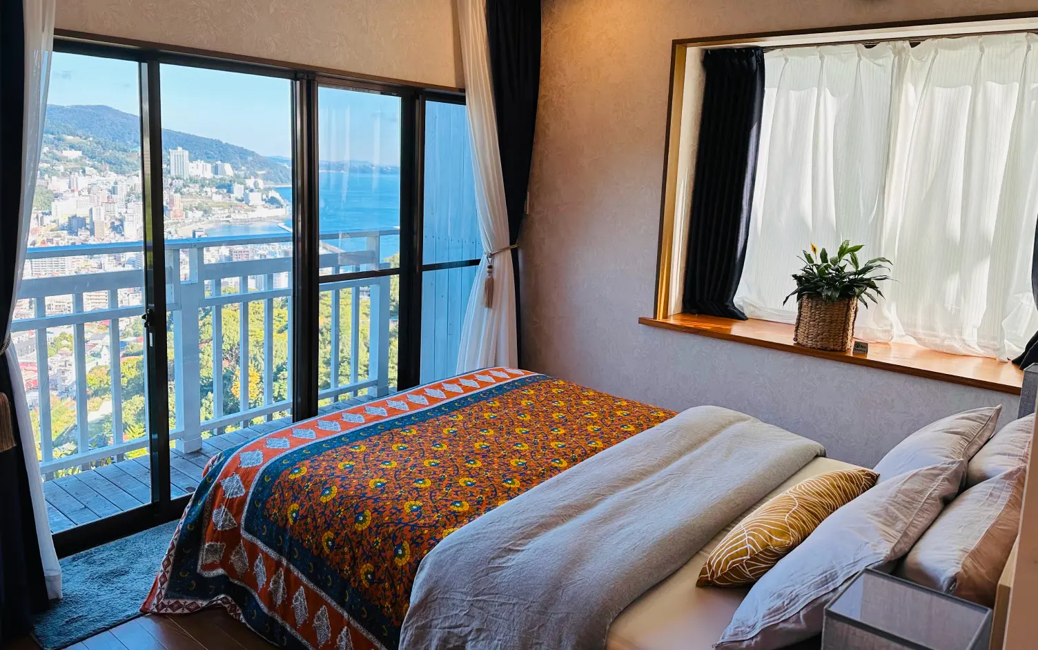 豊かな緑に囲まれた熱海天海ヴィラからは、熱海の街並みや海を一望でき、夜には目前で打ち上がる花火を楽しめる絶好のロケーションを誇ります。